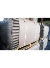 Сотовый заполнитель поставляется в нерастянутом виде, уложенный слоями на палете (объем 1 палеты= 1 куб.м). Количество заполнителя на одной палете в растянутом виде в среднем 1000 кв.м. ДСП, пенопласт или брус в том же количестве занимают объем равный 32 куб. м. То есть, сотовый заполнитель занимает в 32 раза меньше места на складе и в транспорте чем традиционные материалы.